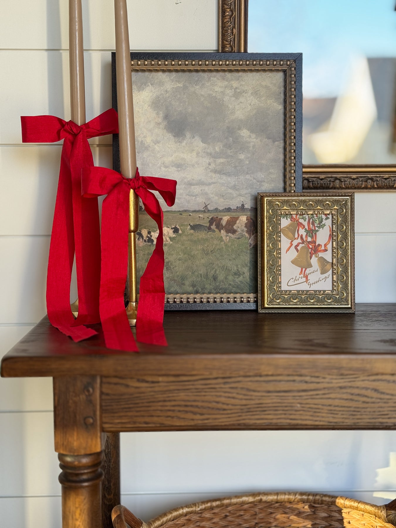 Perfect for adding warmth and a touch of nostalgia to your holiday decor, this art print pairs beautifully with traditional greenery and gold accents.