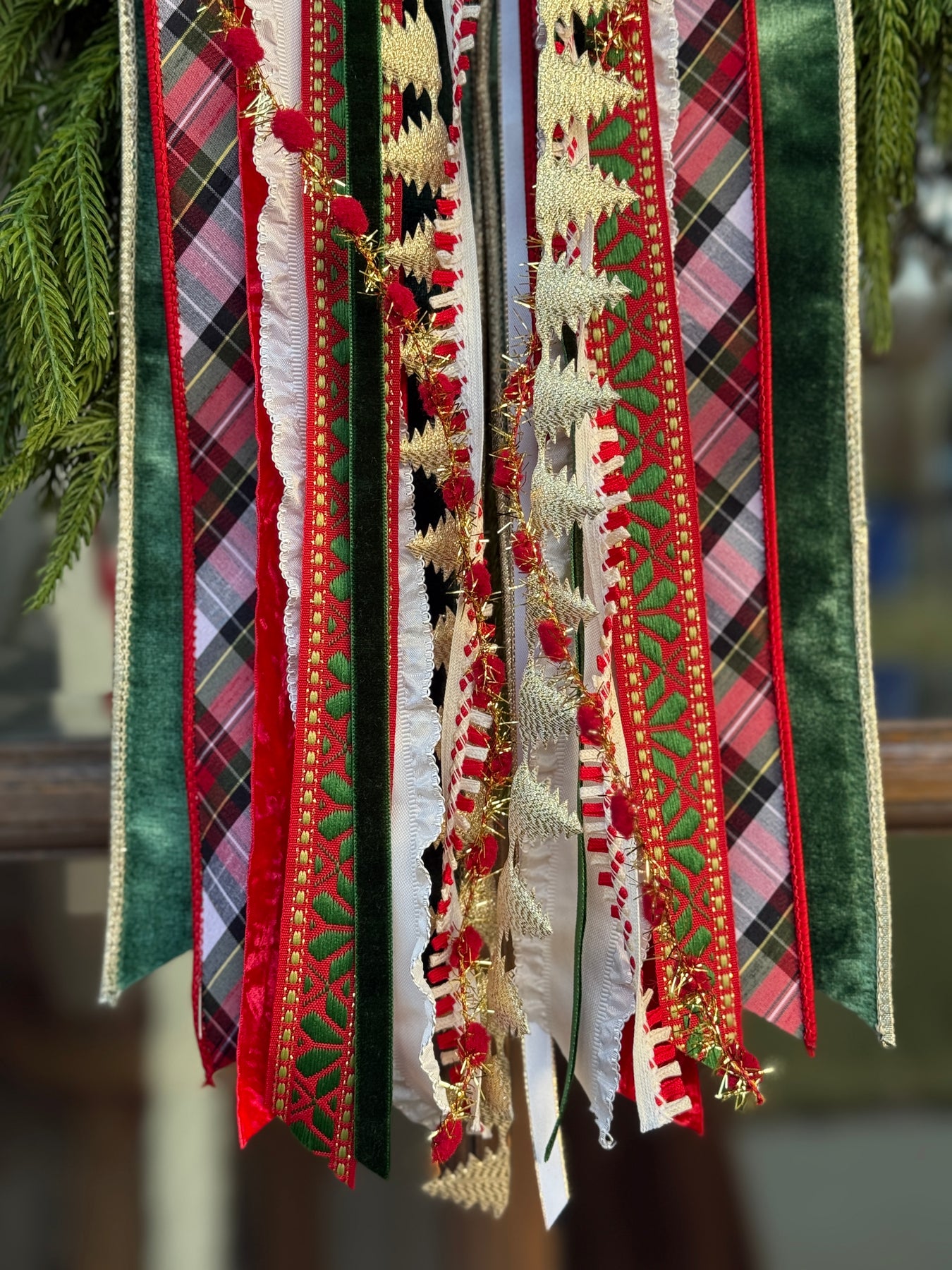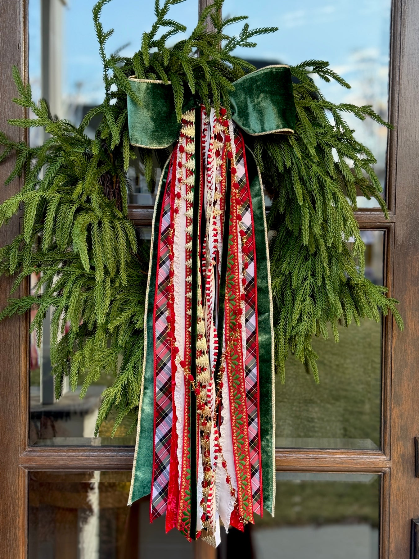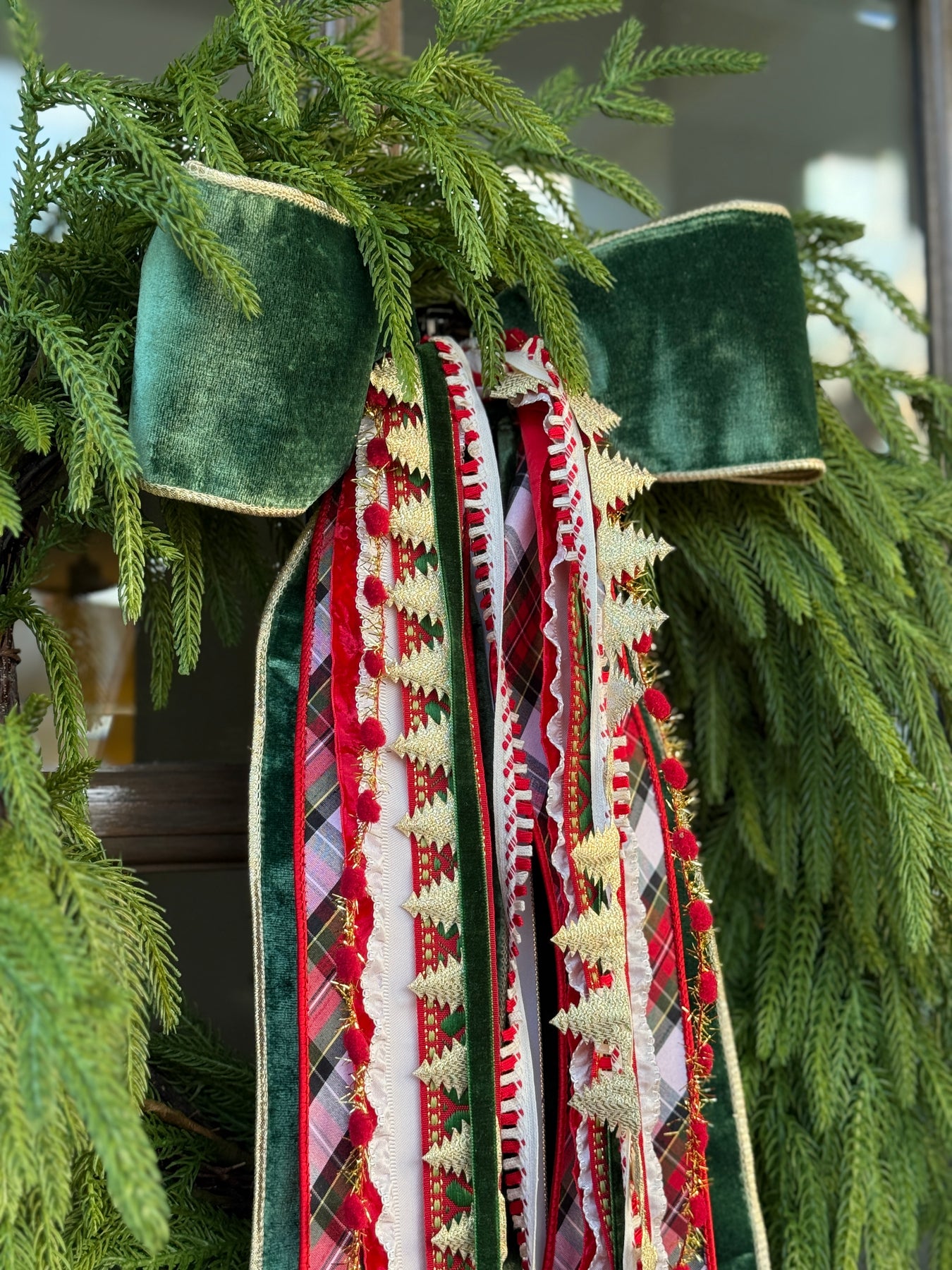 Merry Cottage is a joyful mix of playful tartans, velvet textures, festive trims, and cheerful pops of color that feel straight out of a storybook Christmas. With its whimsical ribbons and cottage-inspired charm, this designer bow brings warmth, nostalgia, and a touch of holiday magic to any wreath or garland.