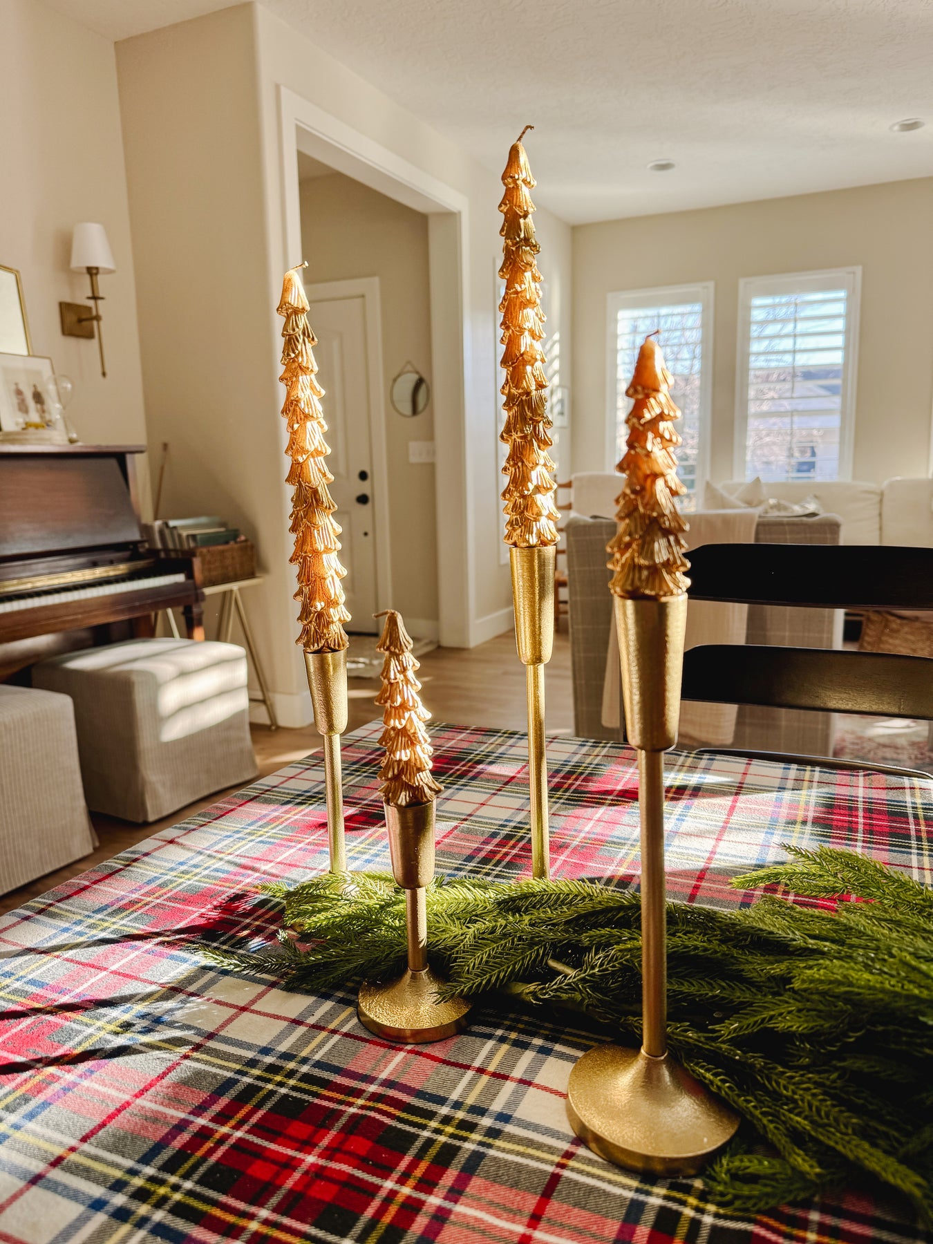 Style them on a holiday tablescape, entryway console, or festive shelf to bring soft candlelight and a timeless gold glow to your winter home.