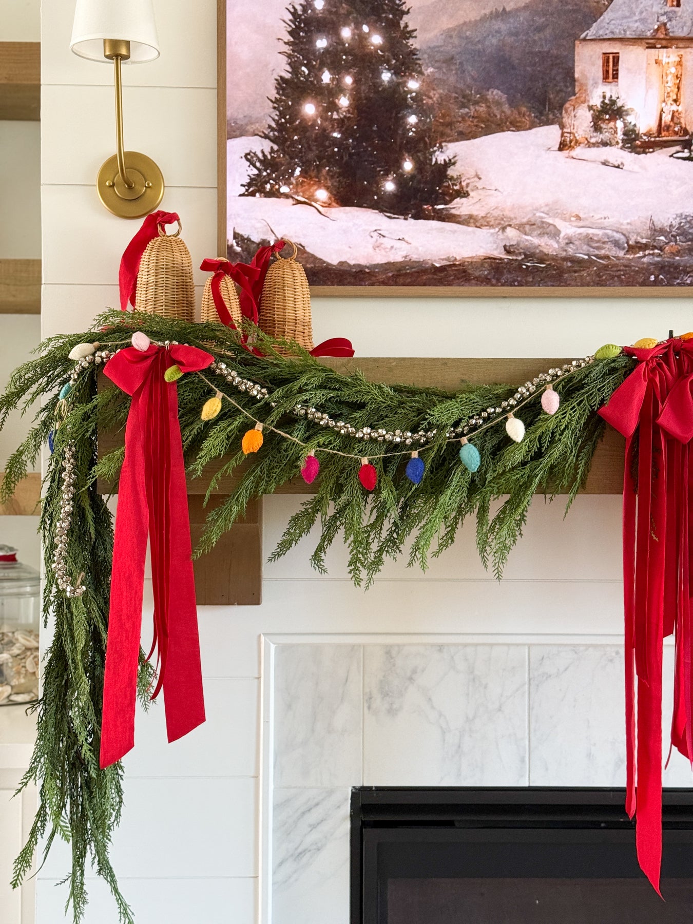 Drape it across greenery, layer it with your favorite ribbons, or add it to a playroom for a touch of whimsy. The mix of bold and pastel tones creates a lively, magical look that feels joyful without overwhelming your decor. It is the perfect finishing detail for a spirited, merry home.
