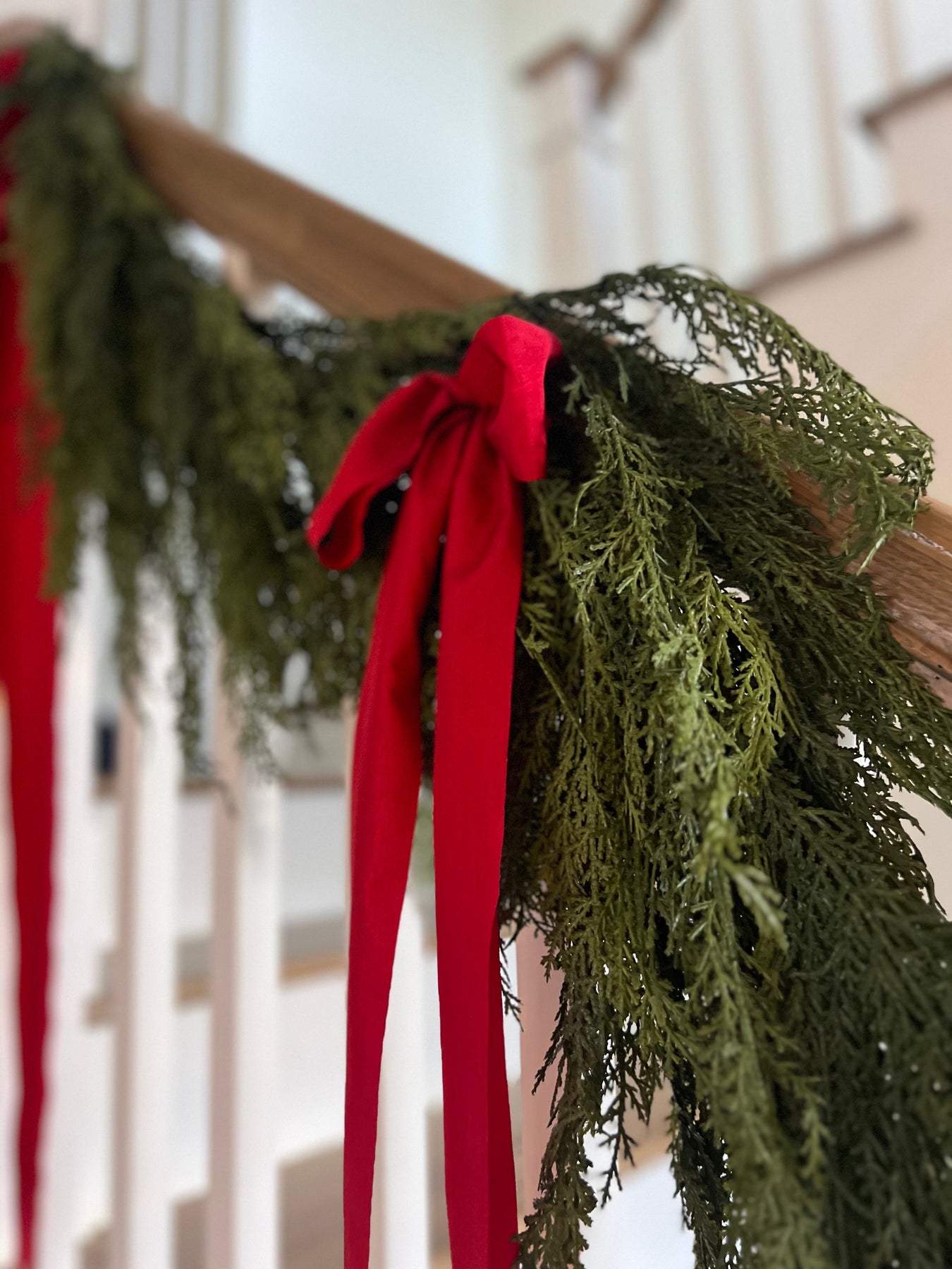 Welcome the feeling of nature into your home this winter season with life-like, artificial Christmas greenery garlands. This faux cedar garland with stunning, real touch greens is certain to elevate your Christmas mantel and holiday table decor. This garland has a center thick wire surrounded with loose real touch greenery, this allows you to bend the garland to achieve "hanging" cedar that you would see in nature. At 48" this is great for table scapes, small side tables or as an addition to another garland for a fuller "hanging" appearance.