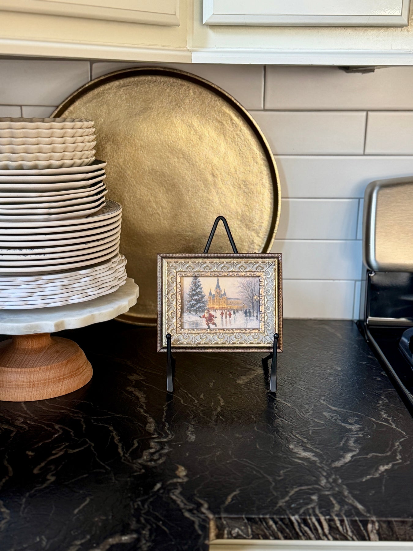 Timeless and nostalgic, this piece brings a touch of storybook charm to your holiday decor, perfect for displaying on a mantel, sideboard, or within a curated gallery wall.
