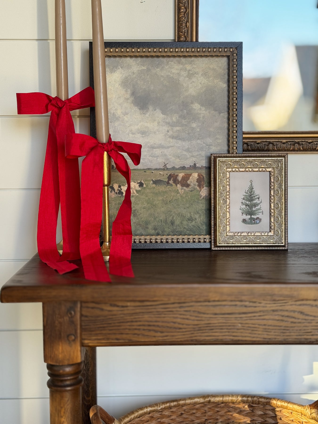 Framed in an ornate gold border, this 5x7 art print adds a touch of nostalgic elegance to any wall or mantel. Beautiful on its own or as part of a curated holiday collection, it embodies the charm and spirit of a classic Christmas home.