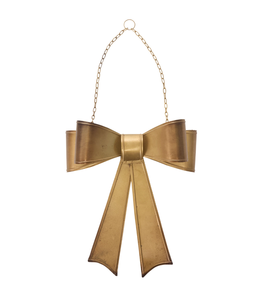 A statement piece steeped in holiday nostalgia—our Brass Turnberry Bow brings a festive touch to your front door or holiday mantel. Crafted from lightweight metal and finished in a warm, vintage-inspired brass, this decorative bow hangs from a gold chain and adds timeless charm to any space.