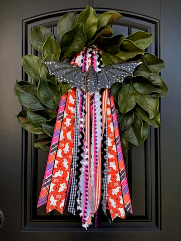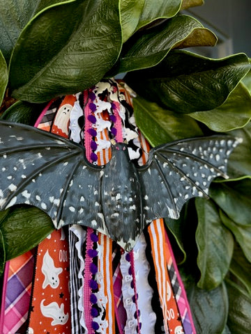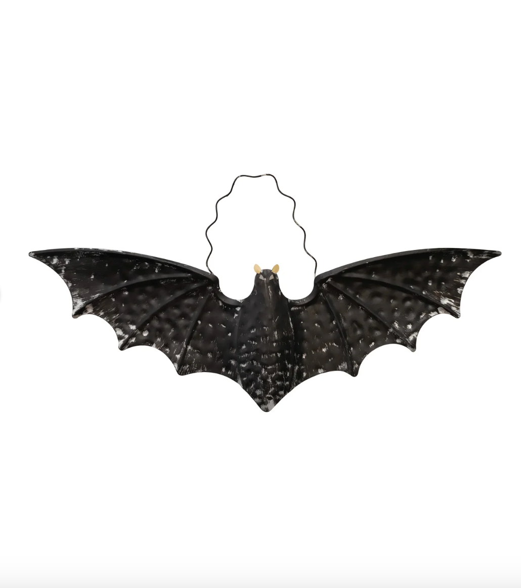 Add a playful hint of Halloween charm to your seasonal styling with The Midnight Hanger. This distressed metal bat is the perfect whimsical accent for your wreaths, gallery shelves, mantels, or entryways. Lightweight with a built-in hanger, it pairs effortlessly with our halloween ribbon styles, including Pink-A-Boo, for a festive, layered look.