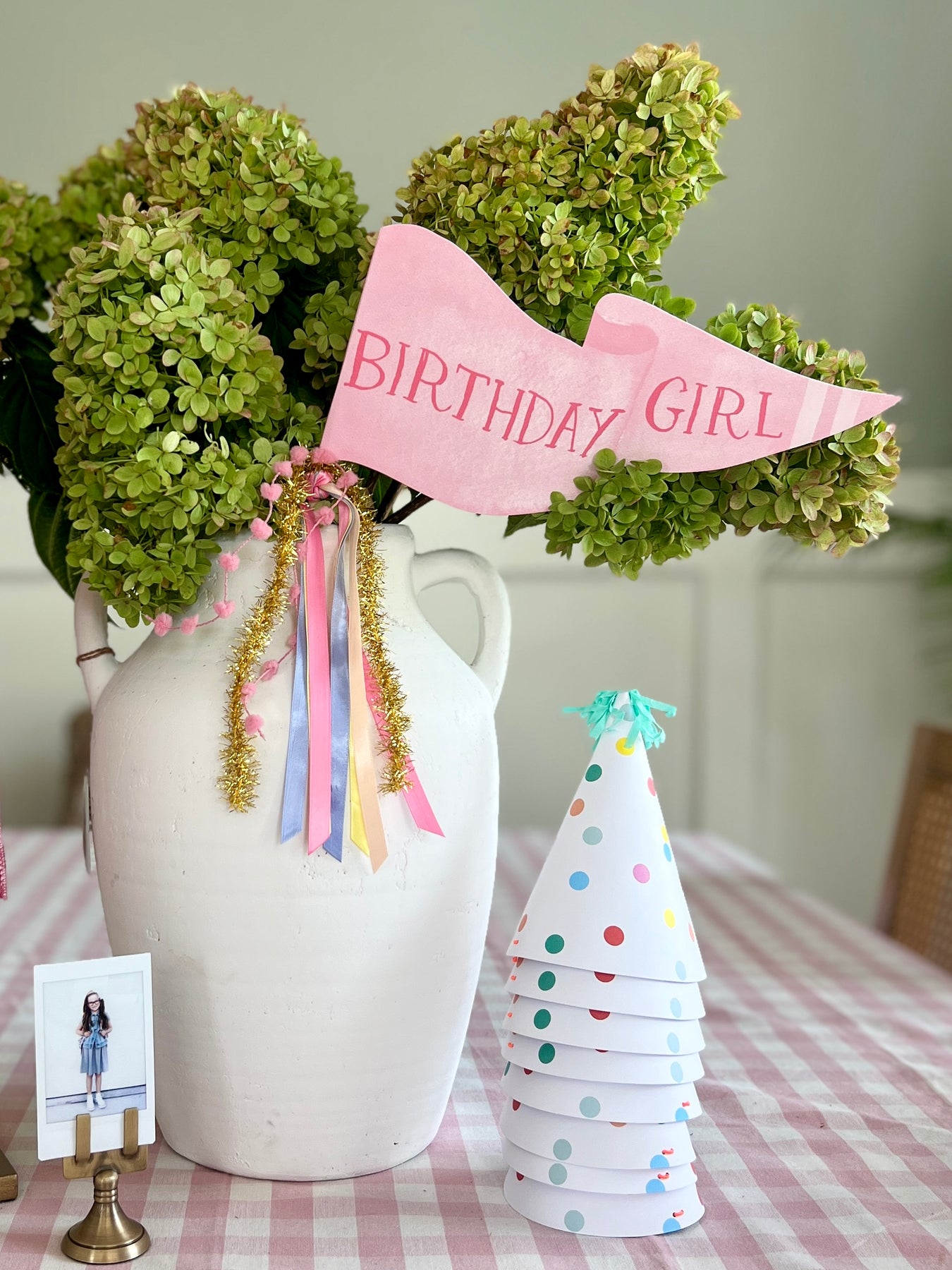 Three cheers for your favorite birthday girl—our Birthday Girl Party Pennant is a fun little prop that instantly makes the celebration feel extra special. Hold it for photos, add it to a party display, or use it as a cake topper moment—finished with playful ribbon streamers for movement and charm.