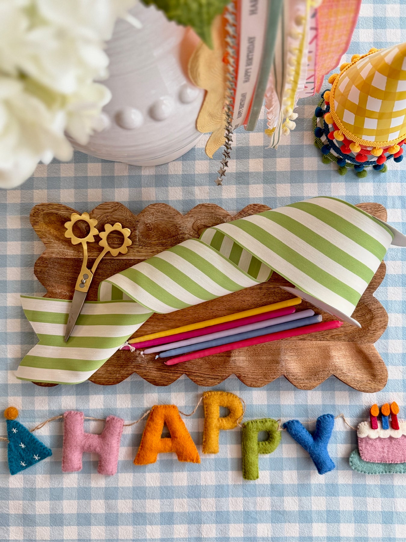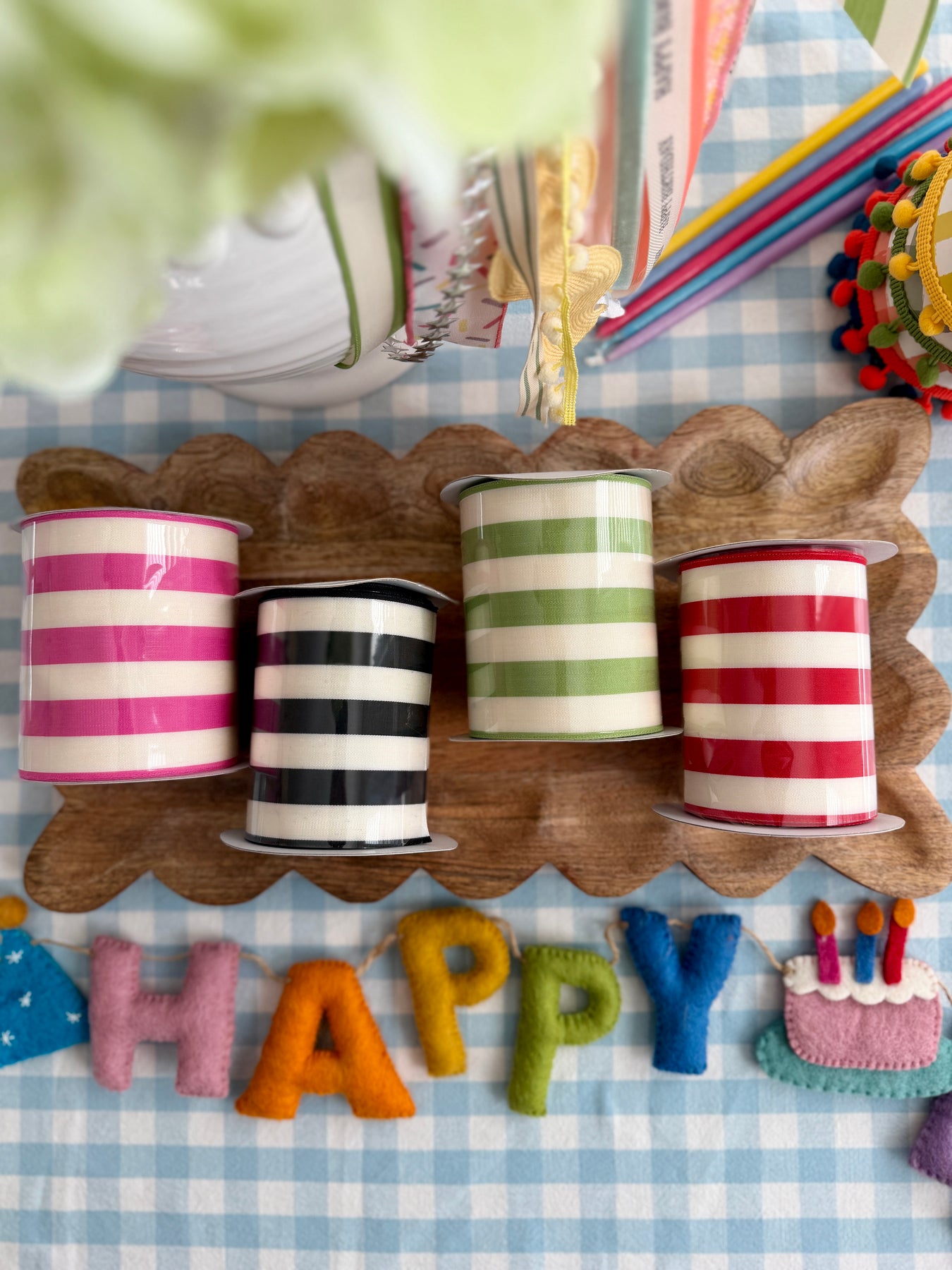 Fresh, cheerful, and made for celebrating, our Celebration Stripe 4" Ribbon brings a happy pop of color to birthday styling and beyond. The crisp stripes are perfect for big statement bows, wrapping gifts, or weaving into a DIY ribbon garland for party backdrops, mantels, and tablescapes.