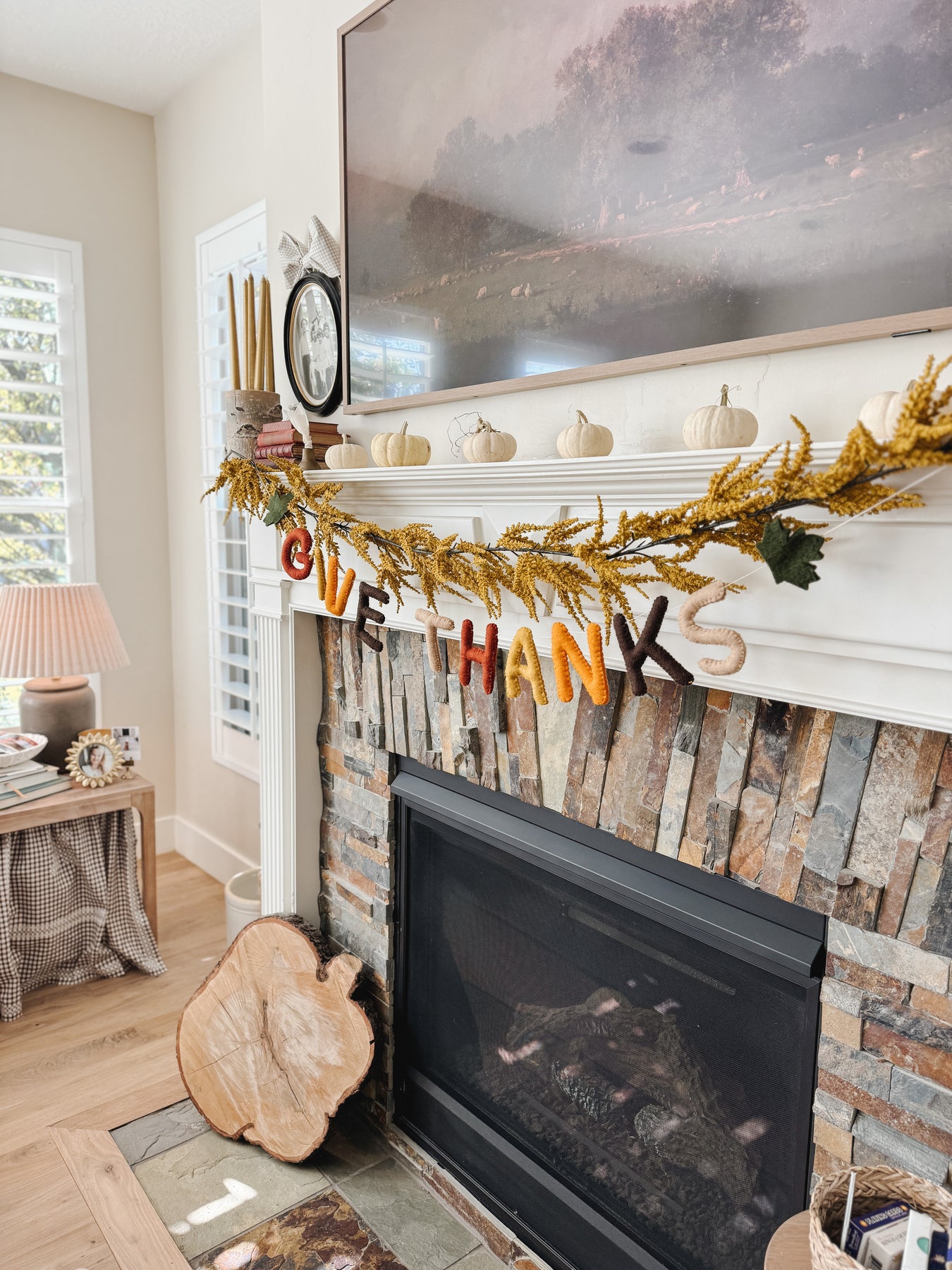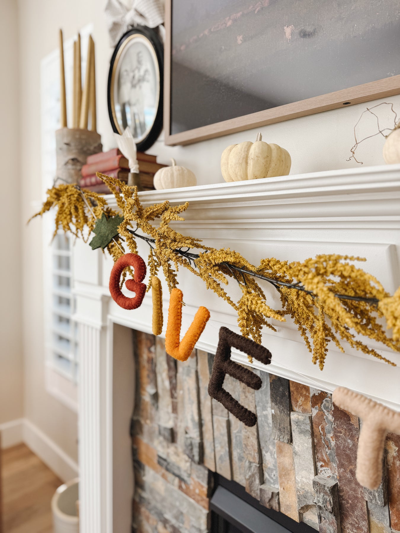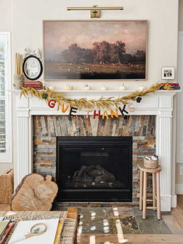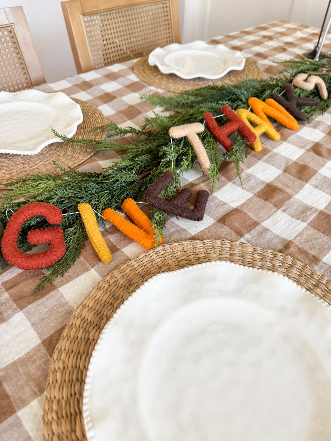 Each letter is hand-felted from 100% New Zealand wool and dyed with eco-friendly, azo-free dyes, creating a sustainable accent that’s as thoughtful as it is festive. Whether draped across greenery, layered along a tablescape, or hung with bows above your holiday meal, it’s the perfect finishing detail for your Thanksgiving home.