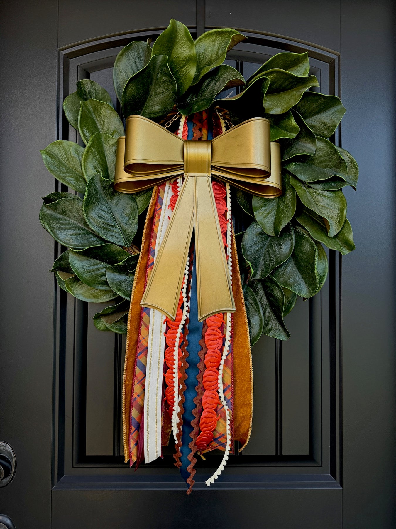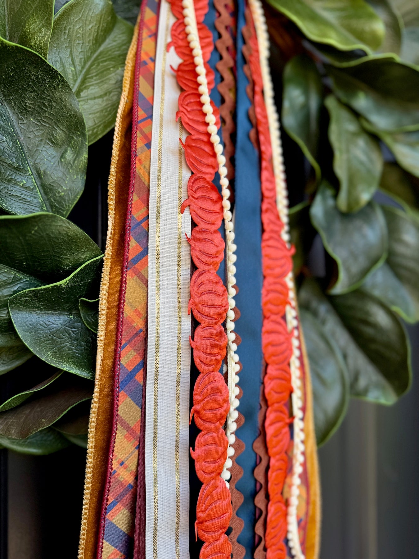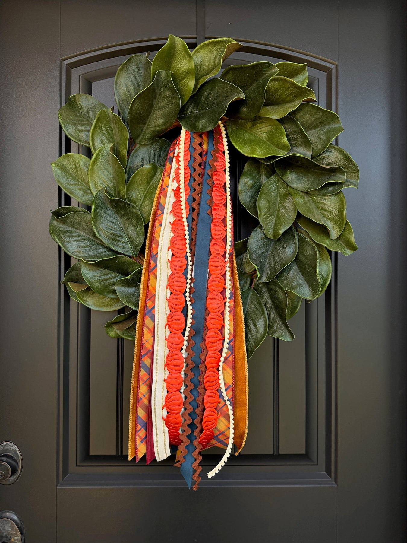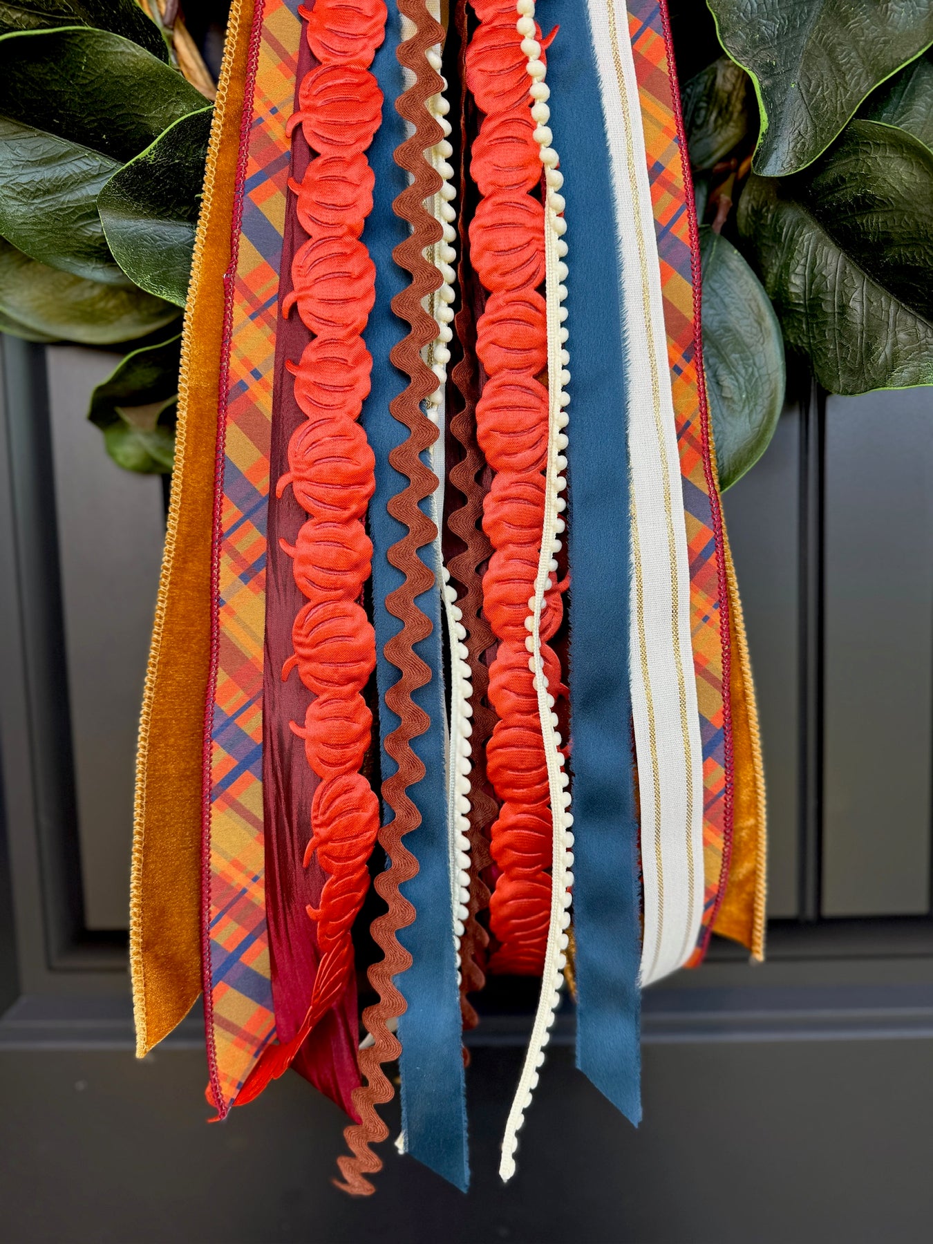 Our Golden Harvest Long Ribbons are perfect for draping from wreaths, garlands, or bannisters—adding instant fall charm with flowing strands of rich, velvet-like textures and pumpkin-inspired colors. Their length and movement make them versatile for decorating throughout your home.