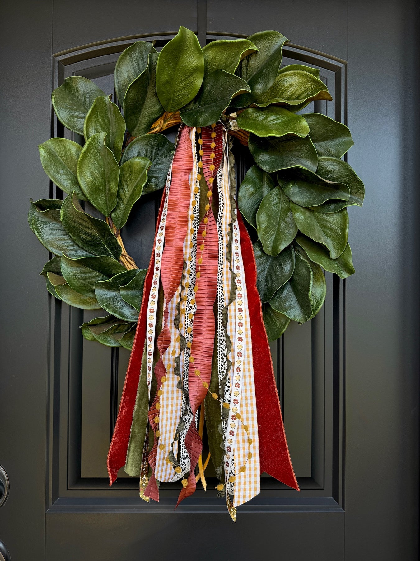 Our Applewood Charm Long Ribbons are perfect for wreaths, garlands, and bannisters—offering flow and movement with layers of gingham checks, floral trims, pom details, and velvet textures. Designed to capture the feeling of a golden fall afternoon, these ribbons add charm and dimension wherever you style them.