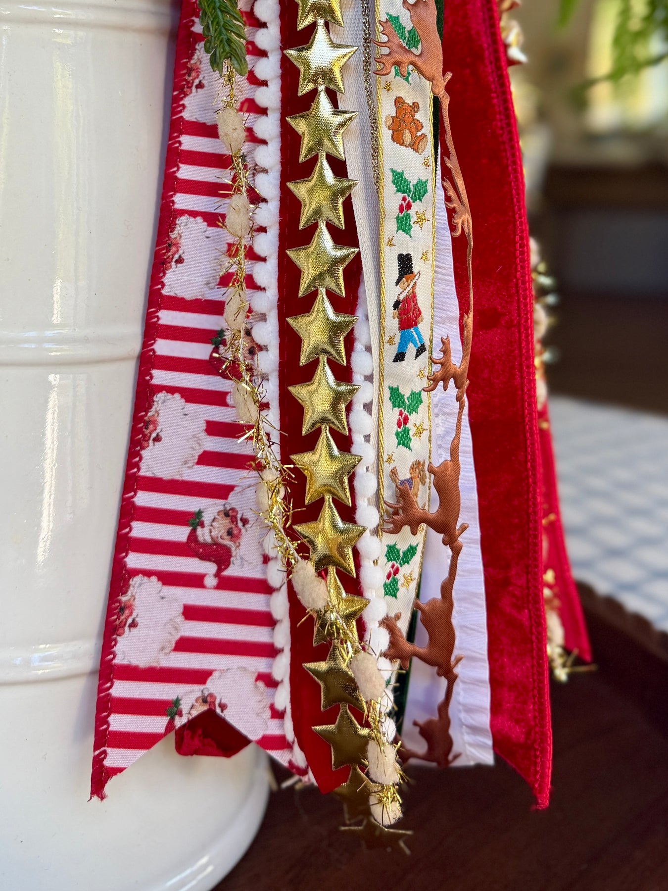 Small in size, but bursting with Christmas joy. The Santa’s Workshop mini set blends classic red velvet with candy stripes, golden shimmer, and storybook charm — perfect for smaller wreaths, kitchen hooks, or mantel décor that needs a sprinkle of holiday cheer.