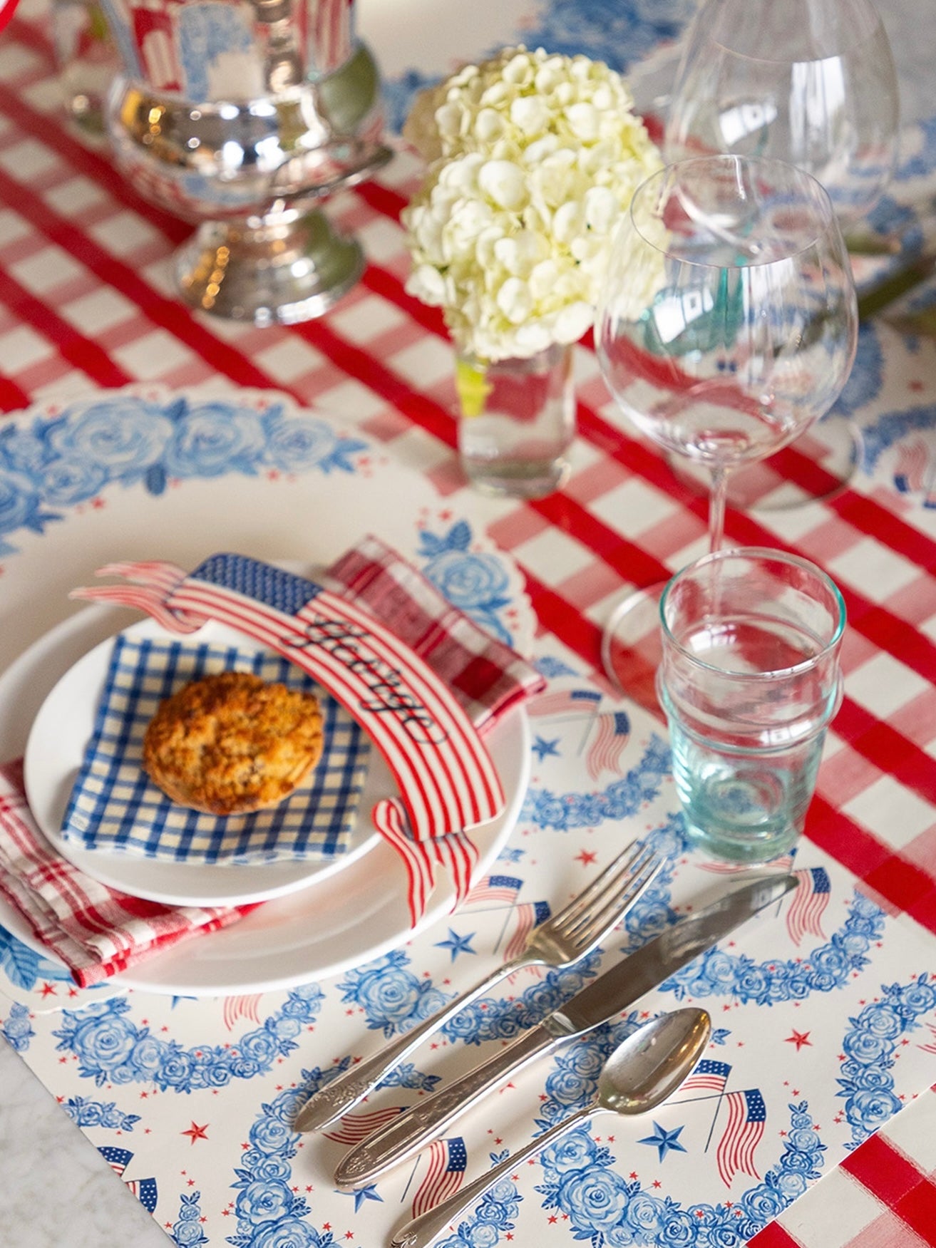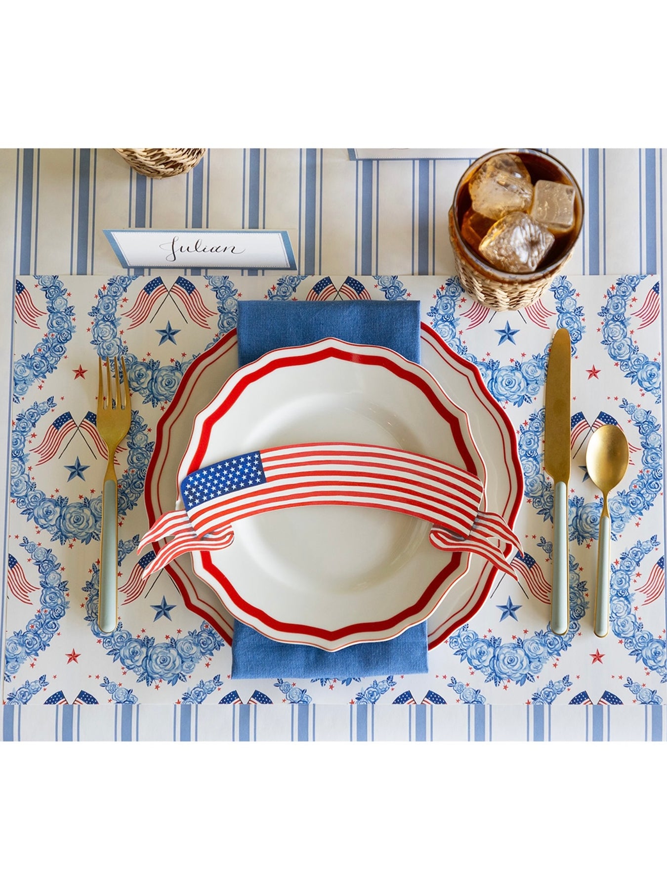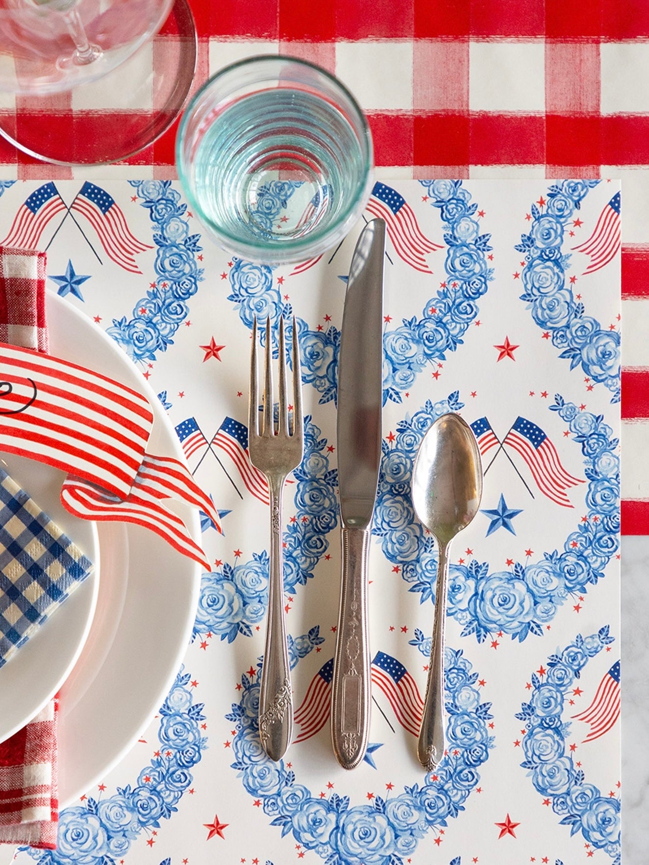 • Paper placemats featuring a floral Americana design