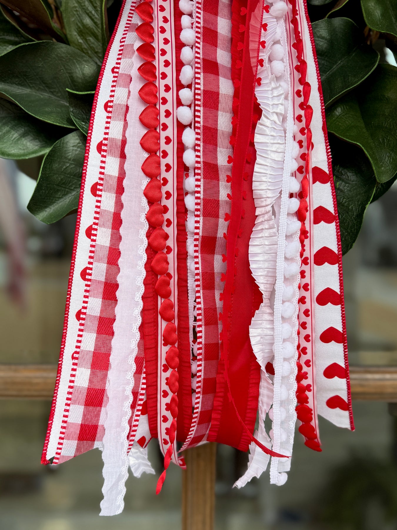 Sweet, romantic, and full of movement, the Forever & Always Long was designed to make a statement. Cascading ribbons in classic Valentine hues feature heart motifs, soft textures, and timeless details that instantly elevate wreaths, hooks, or door décor.