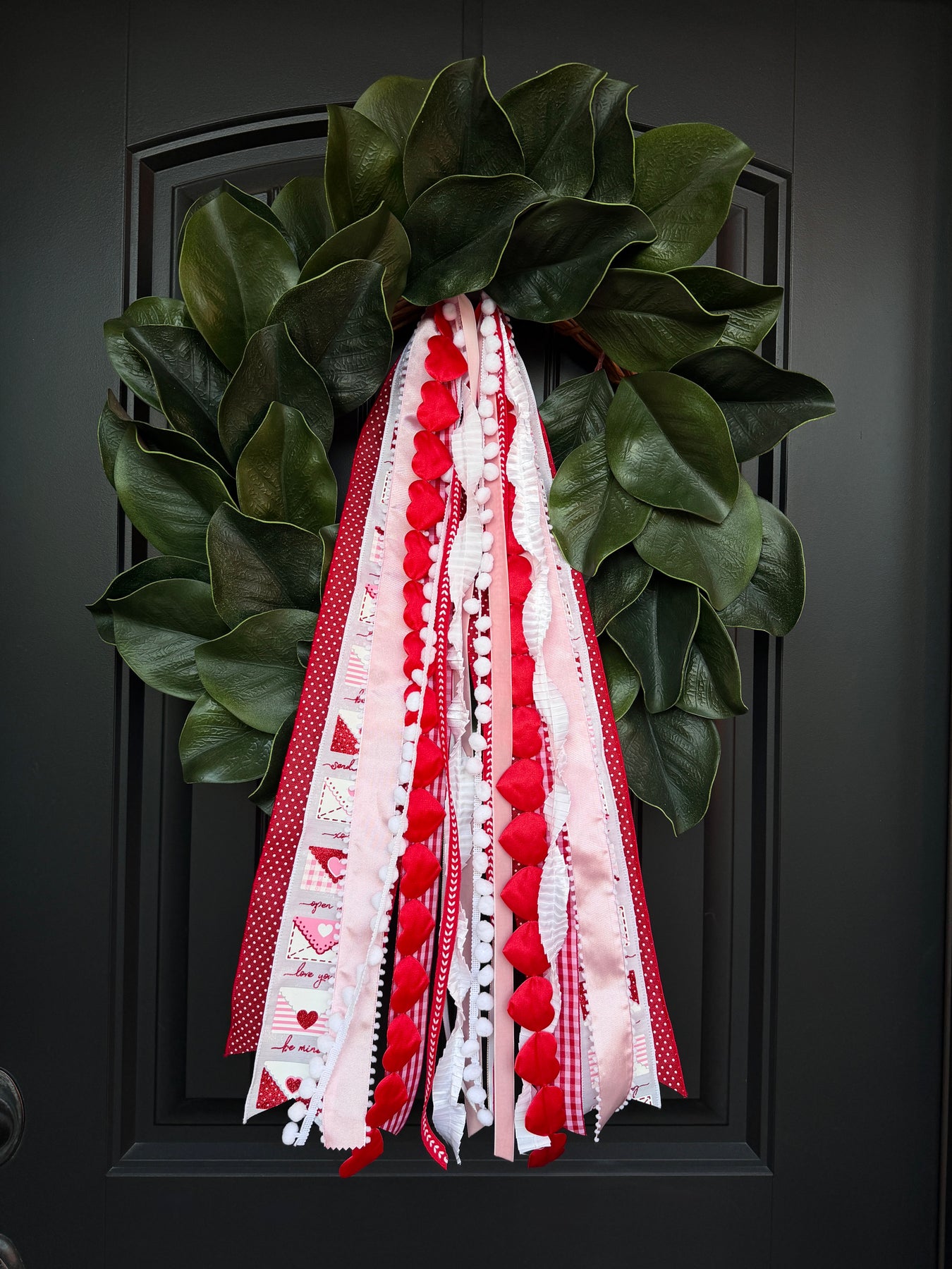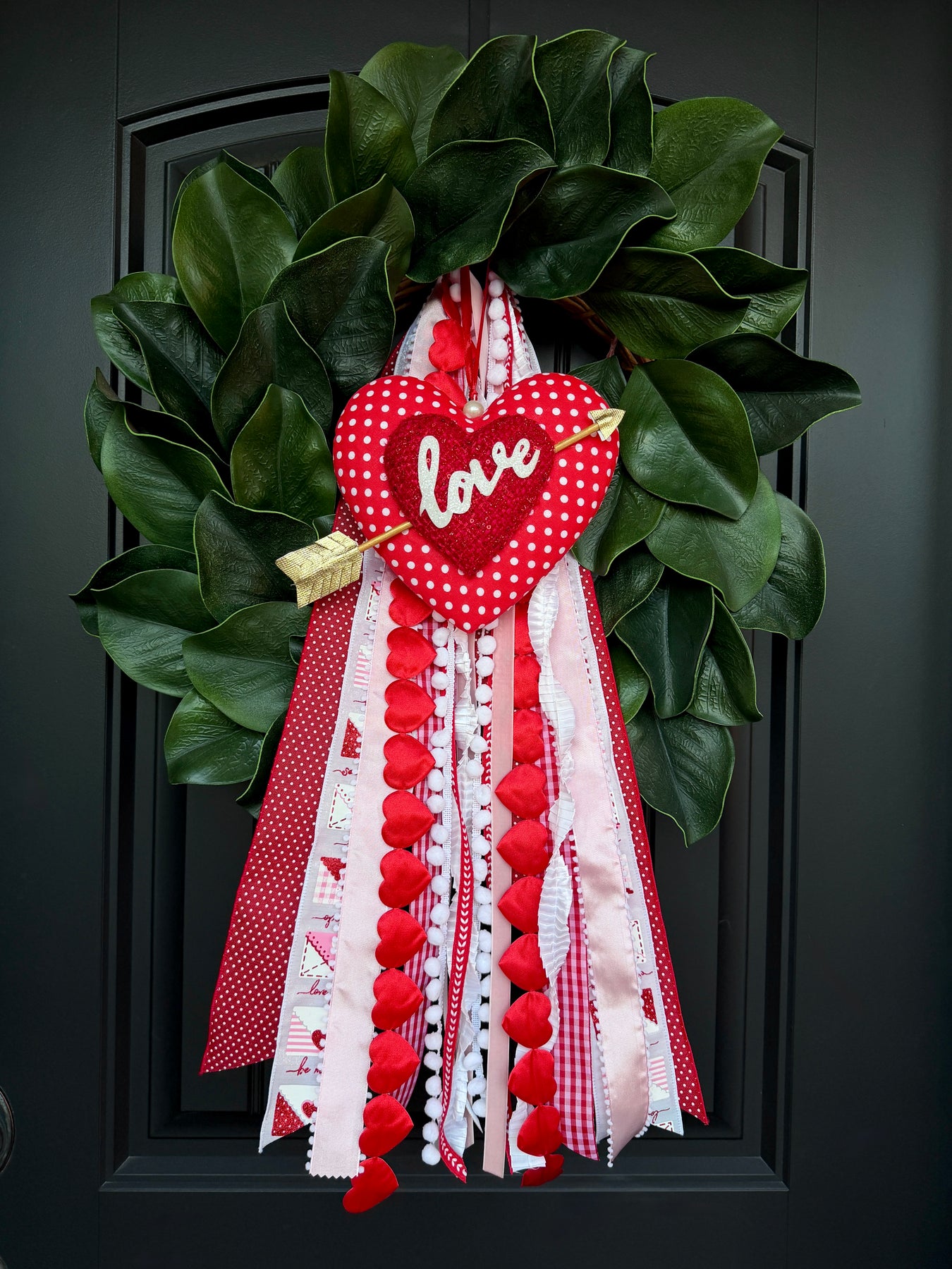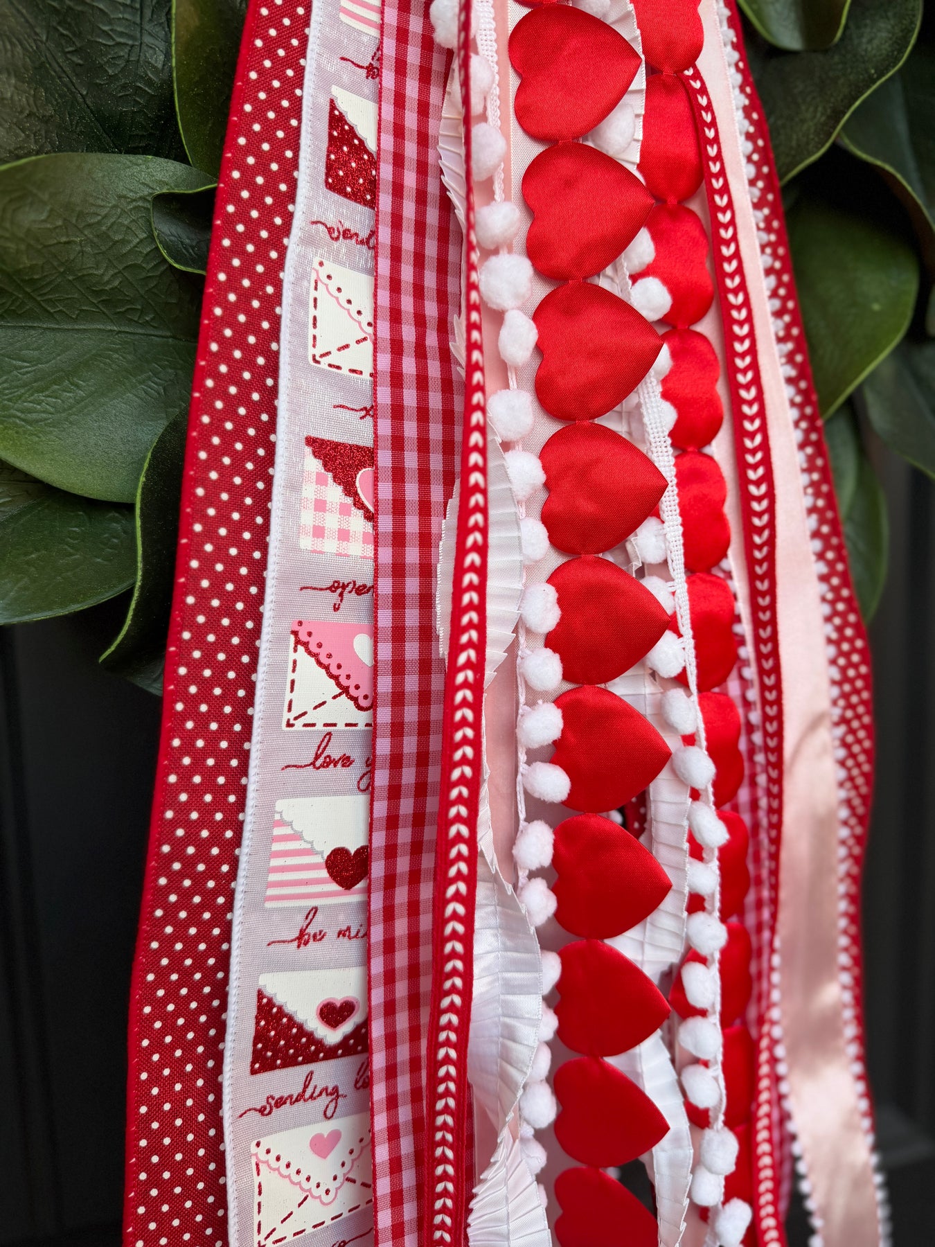 Love is in the layers. The Love Letters - Long is Valentine’s Day sweetness at its finest...stacked with playful patterns and flirty finishes. Featuring red hearts, crisp ginghams, ruffled ribbon, and whimsical envelope motifs, this bow is made to make a statement. Whether you’re dressing a wreath, mirror, or mantle, it’s sure to deliver charm straight from the heart.
