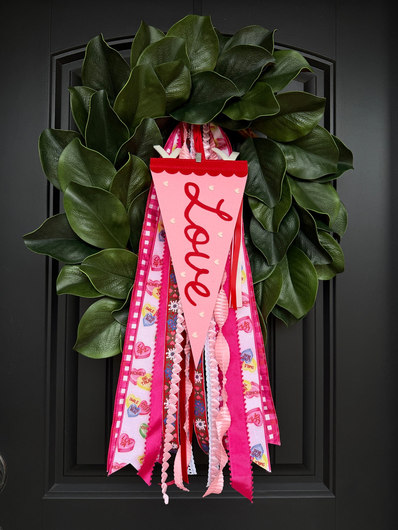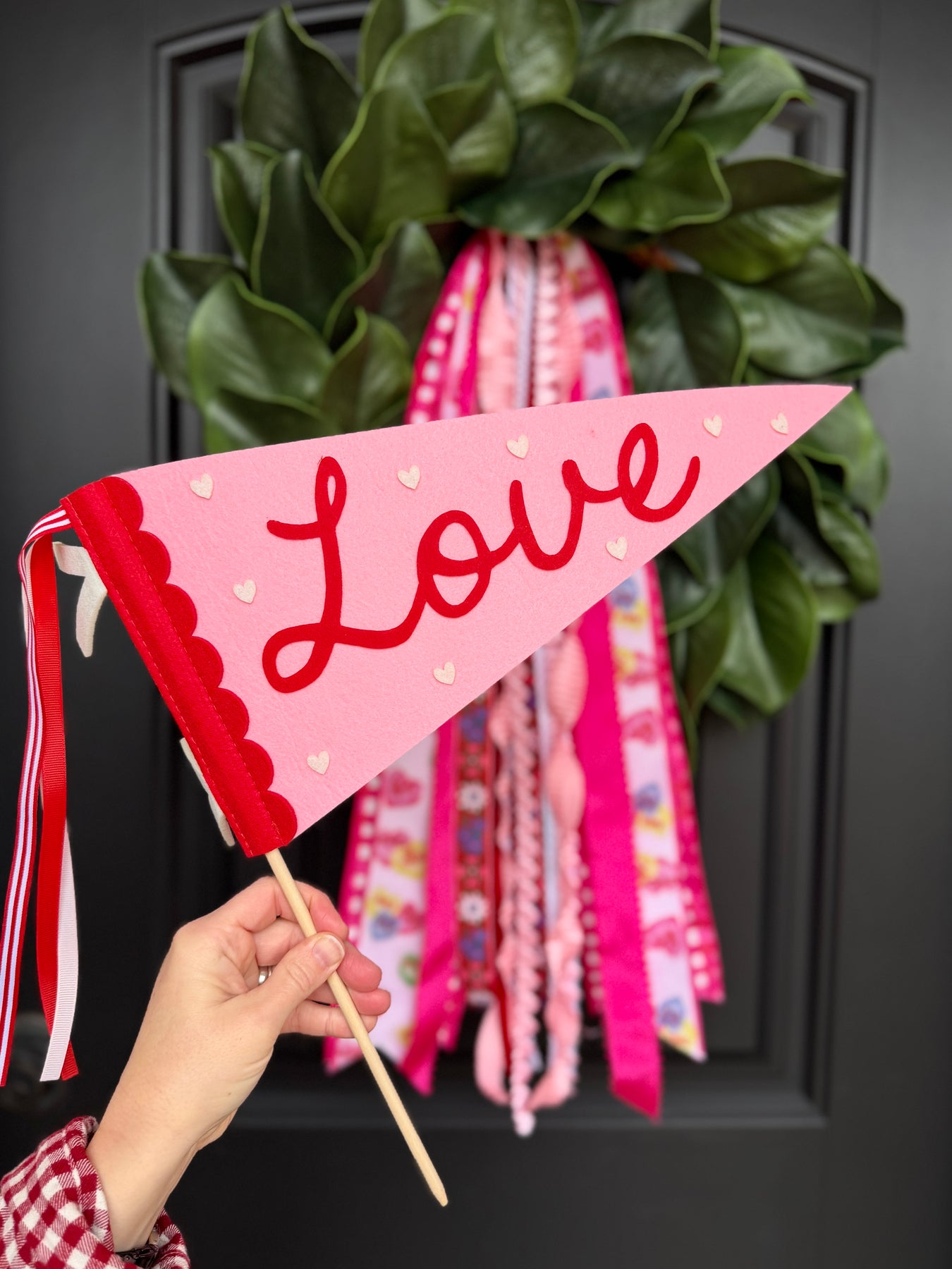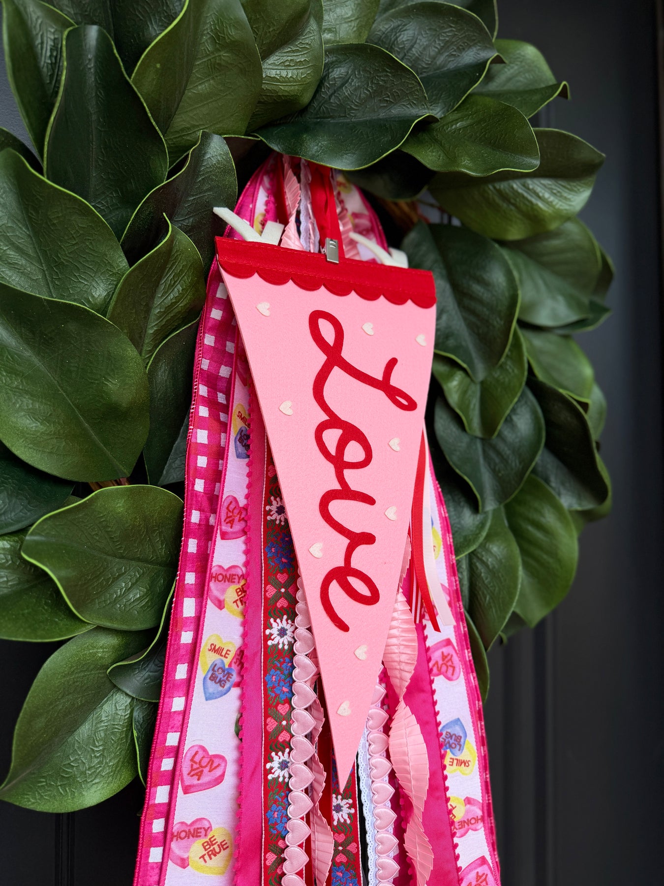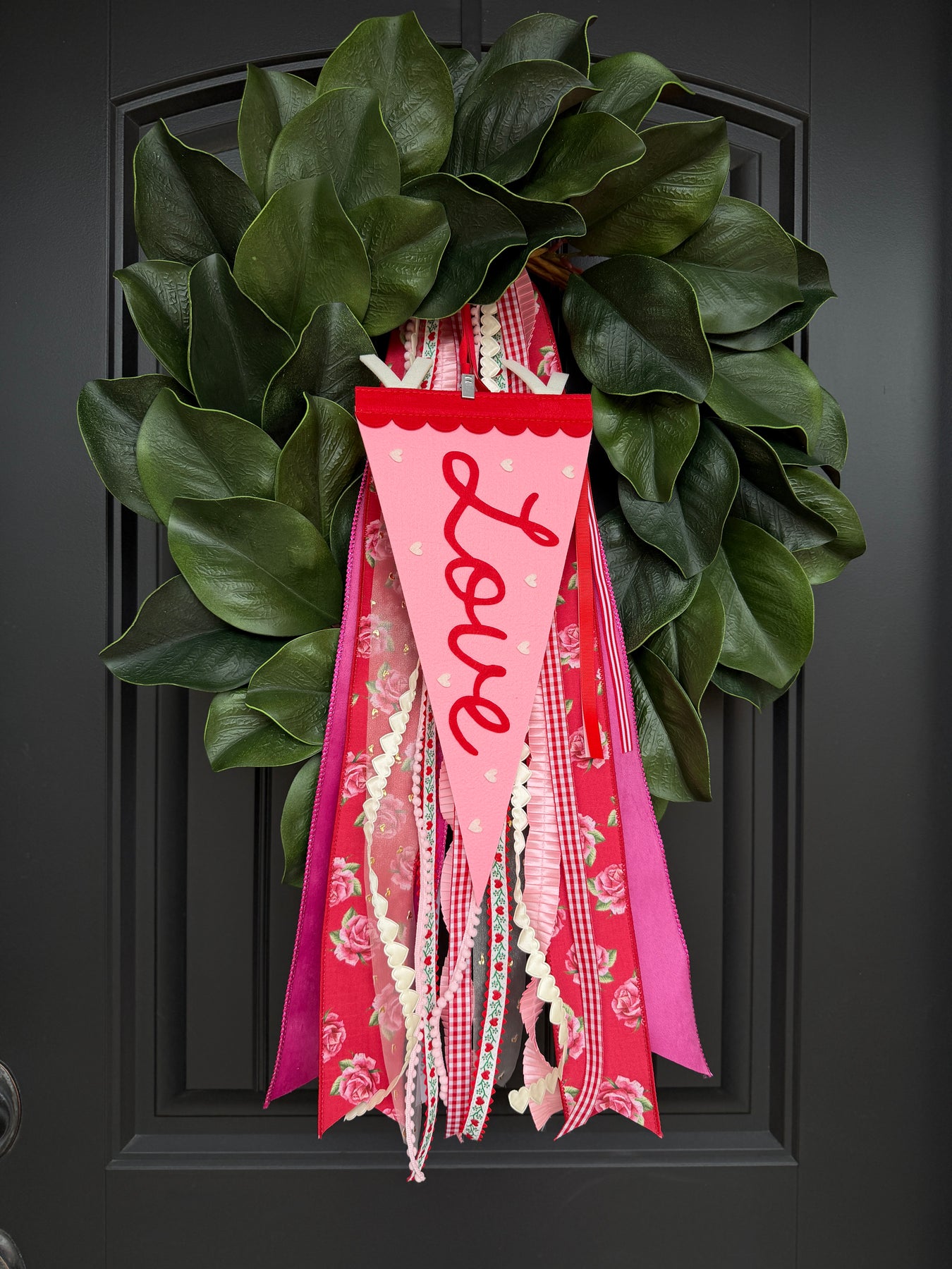 Spread the love. Our Love Pennant adds the perfect playful pop to your Valentine’s Day wreath styling. With classic felt texture, bold red lettering, and coordinating ribbon streamers, it’s the finishing touch your seasonal décor didn’t know it needed.