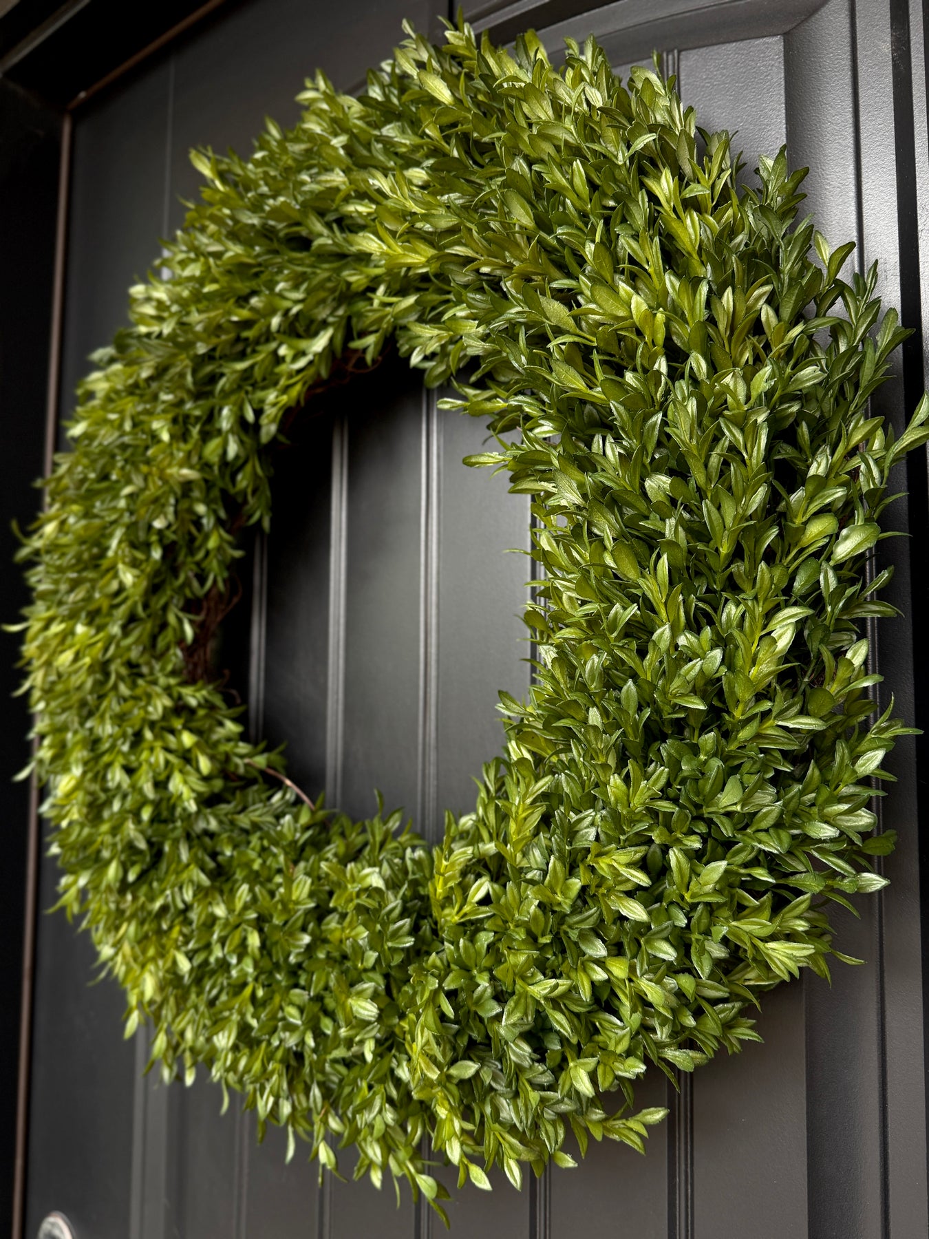- Artificial tea leaf wreath with a full, natural look