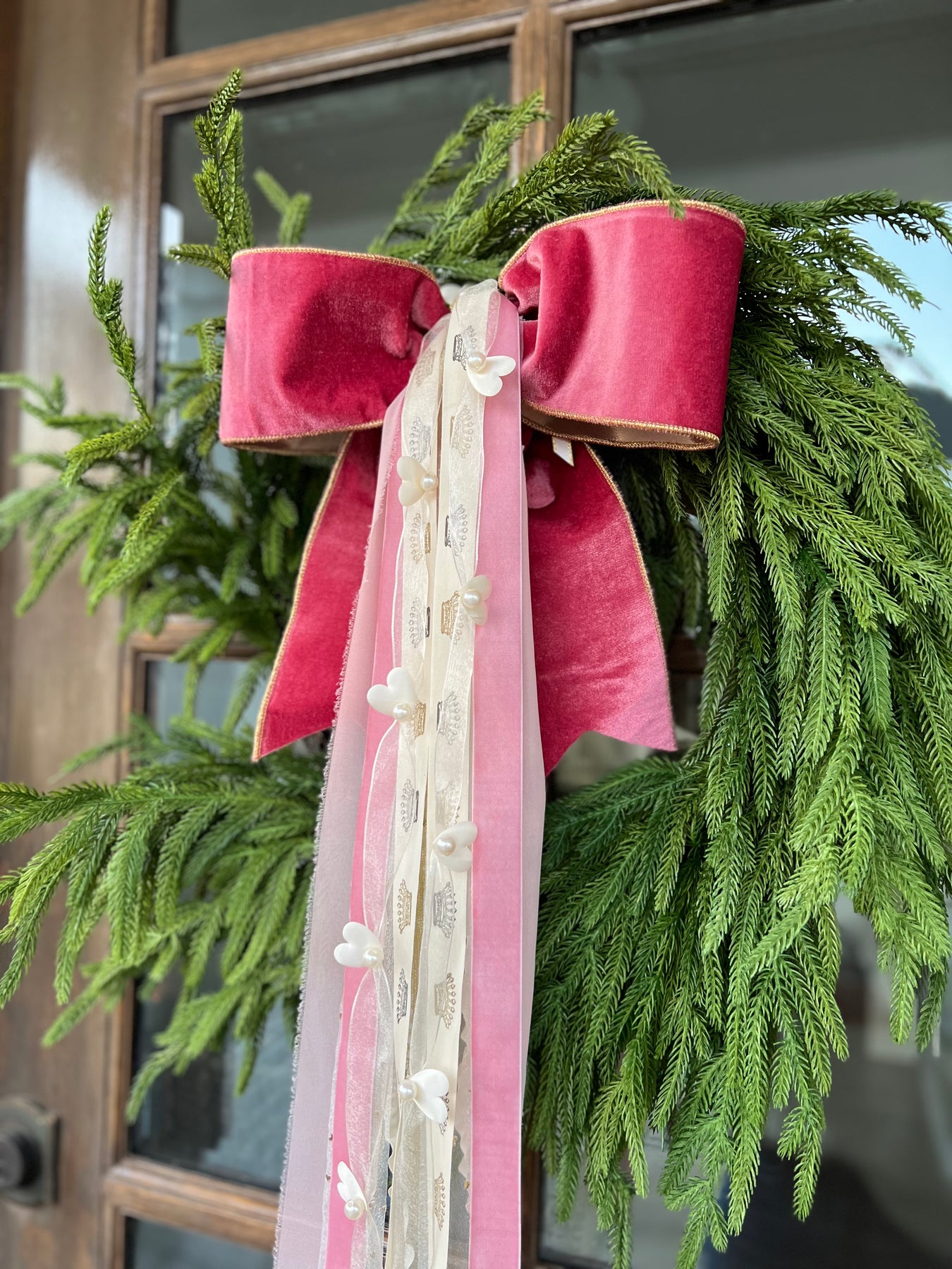 Bold, elegant, and undeniably striking, Queen of Hearts is a statement set designed to steal the spotlight. Rich crimson tones, soft blush accents, and delicate details come together in a layered composition that feels both regal and romantic. This longer length makes it perfect for grand wreaths, front doors, stair rails, mantels, or anywhere you want drama with intention.