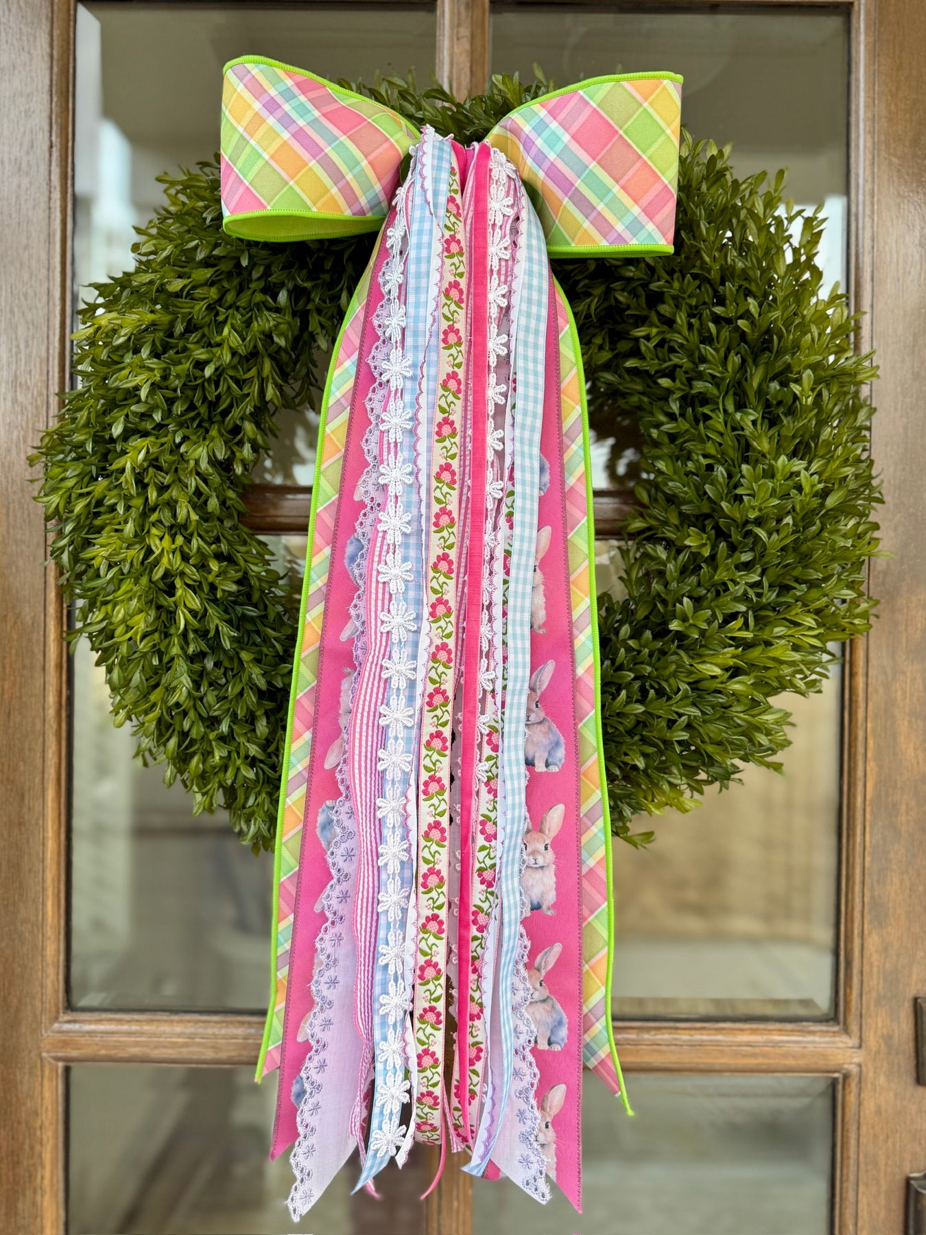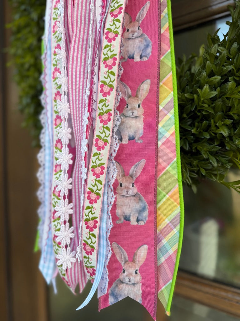 Bright, cheerful, and full of spring personality, our Spring Jubilee Designer Bow is a fun statement for your front door wreath. Layered with happy seasonal color, playful pattern, and textured ribbon details, it adds beautiful movement and an instant pop that feels like spring celebration.